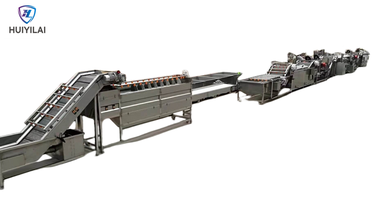 Press "start"—the line runs automatically, with real-time data (temperature, output, time remaining) displayed on the screen. Alerts (e.g., low water, blade blockage) appear with solutions (e.g., "Refill washing tank" or "Clear slicer jam").