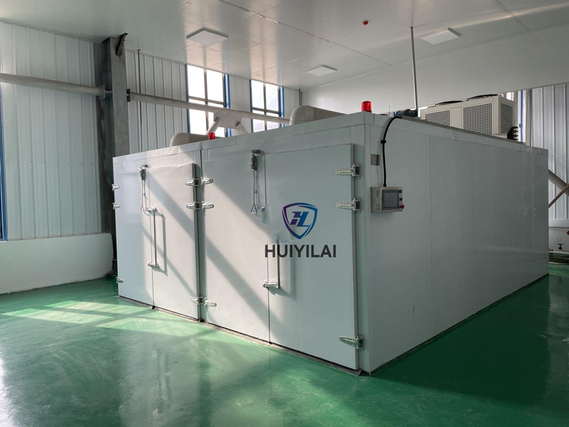 At the same time, the material through the automatic laying device, cleaning machine, slicing machine, lifting machine into the drying room, and in the drying room along the horizontal direction to do section rotation, do "S" shaped operation, while the hot air vertically through the material, high heat transfer efficiency, so as to achieve the purpose of drying material pieces.
